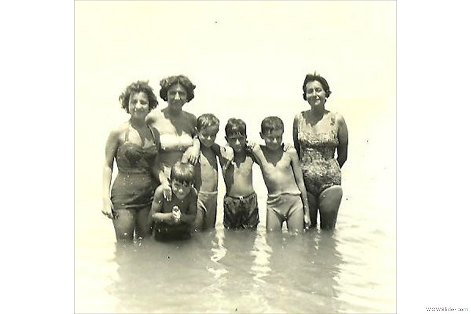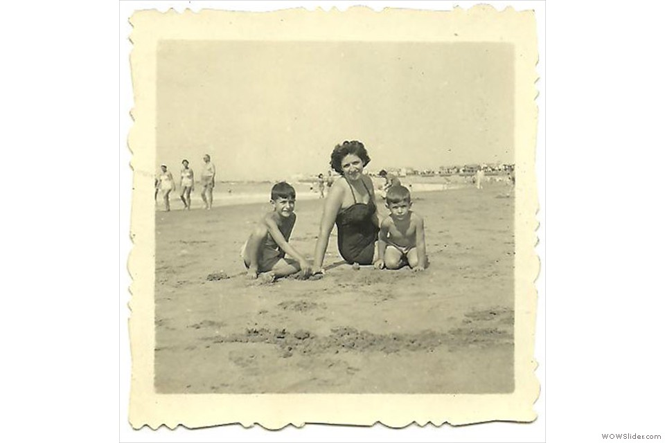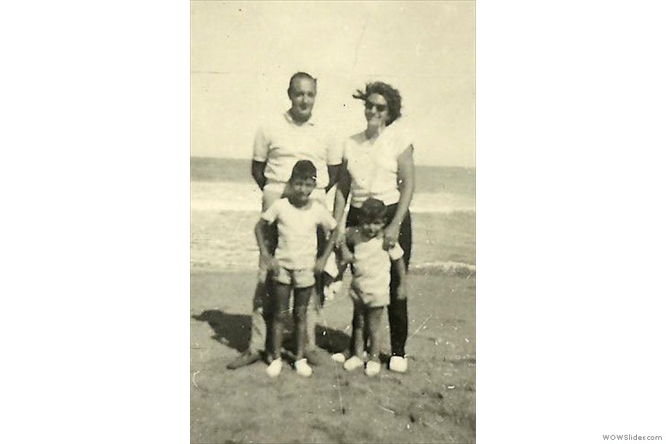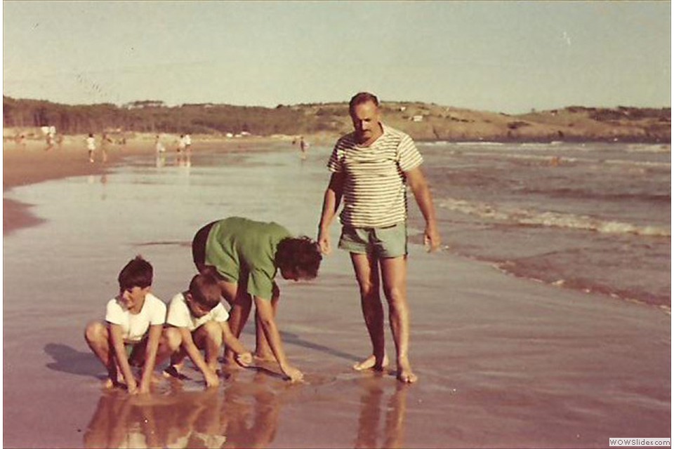 En la playa con Julio e hijos. Data aprox. de 1958.