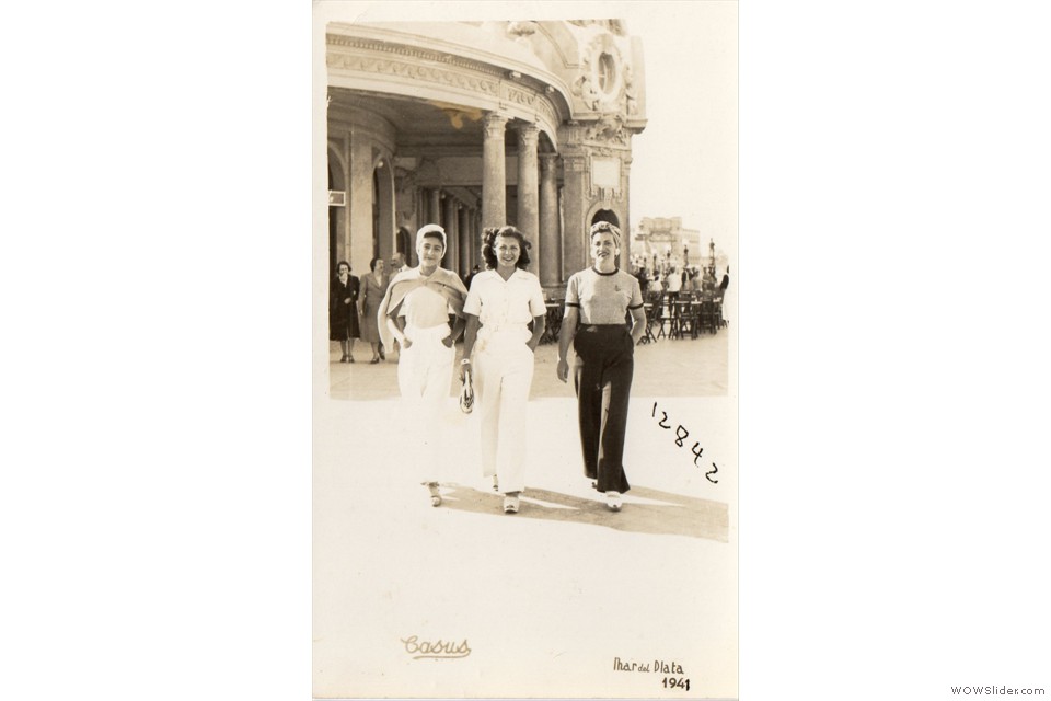 De izq. a derecha, Matilde, su hermana Polola y su tía Fary, Rambla de Mar del Plata, 1941