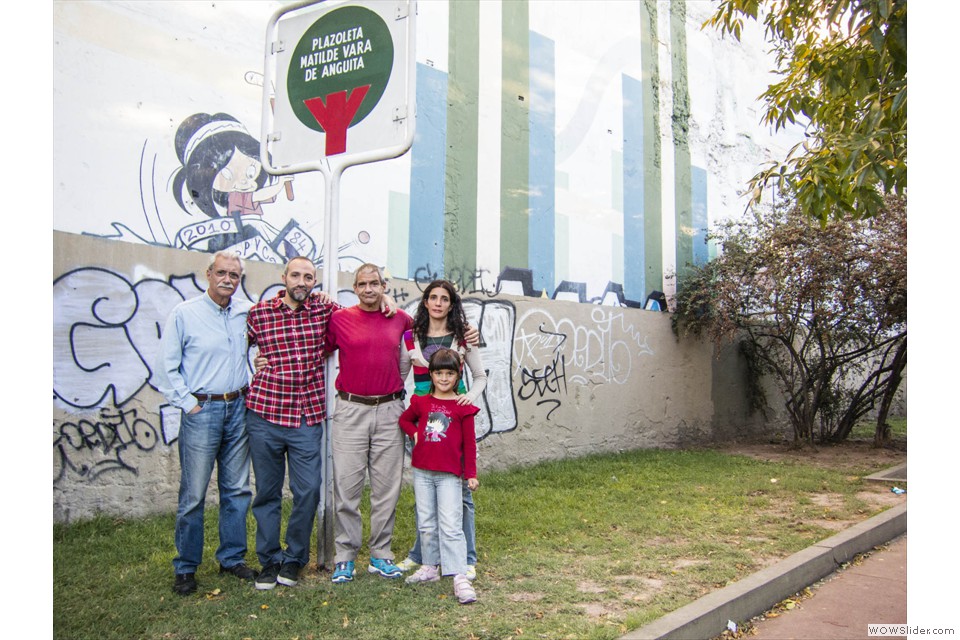 "Quienes hacemos esta página: Horacio, Nicolás, Eduardo, Julia y Candelaria, en la plazoleta Matilde Vara de Anguita"